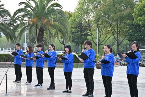 演讲环节结束后,是我院辅导员老师与学院同学的共同朗诵《礼赞新时代》。在抑扬顿挫的朗诵声中,统数师生诉尽了自己的爱国热情。朗诵结束后,全体参会人员合影留念。