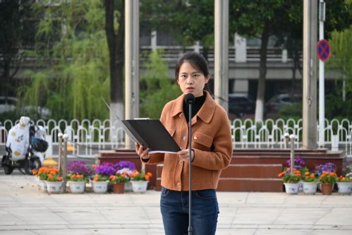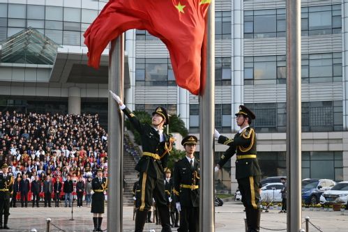 活动第一项内容为升国旗、奏唱国歌。在国歌庄严悠扬的旋律中,全体师生行注目礼,护送五星红旗缓缓升起。