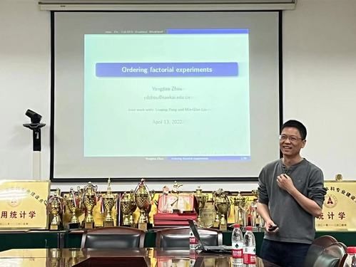 (通讯员 李盼)2023年4月13日上午10:00分,由统计与数学学院主办的“Ordering factorial experiments”学术报告讲座在文波楼401教室成功举办。本次讲座由南开大学统计与数据科学学院周永道教授主讲,学院部分老师和研究生参加了此次讲座。