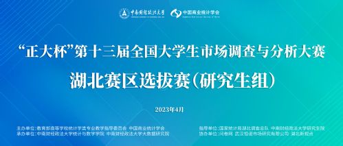 (通讯员:舒鑫才 齐雨萱 杜艺航 李柳启迪 邱天怡)为响应党的二十大报告中提出的“加快建设网络强国、数字中国”时代号召,在全党大兴调查研究之风的背景下,2023年4月15日,由中国商业统计学会主办,国家统计局湖北调查总队、中南财经政法大学研究生院指导,中南财经政法大学统计与数学学院、中南财经政法大学大数据研究院承办的“正大杯”第十三届全国大学生市场调查与分析大赛湖北省研究生组选拔赛正式开赛。国家统计局湖北调查总队副总队长张小青,综合处处长叶祯祥,中南财经政法大学研究生院副院长黄雯,各兄弟高校及企业界专家评委,中南财经政法大学统计与数学学院师生代表共同出席开幕式。开幕式由中南财经政法大学统计与数学学院副院长杨青龙主持。