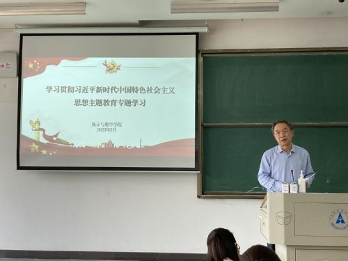 (通讯员 张衡)为深入开展学习贯彻习近平新时代中国特色社会主义思想主题教育,用习近平新时代中国特色社会主义思想凝心铸魂,5月11日下午,统计与数学学院在文波楼305教室召开学习贯彻习近平新时代中国特色社会主义思想主题教育专题学习会。学院党委书记梁娜作专题宣讲。学习会由学院院长张虎主持,学院领导班子及全院教职工参加学习。