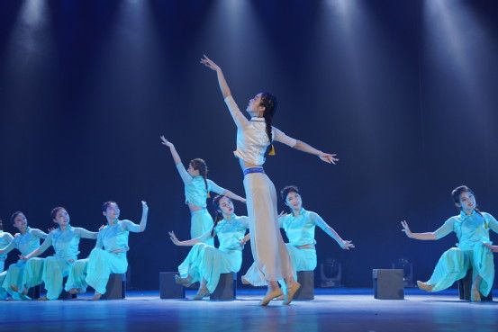 统计与数学学院舞蹈队节目《碇步桥》从春晚节目中汲取灵感,活泼开朗的舞步,灵巧动人。大舞段中,典型的双颤摆手是模仿人们在碇步桥上走路不稳的姿态,而招手的动作则表达出对美好时光的回望,从生活中的动作进行提炼和艺术加工,让观众直观的感受到舞蹈艺术的魅力。