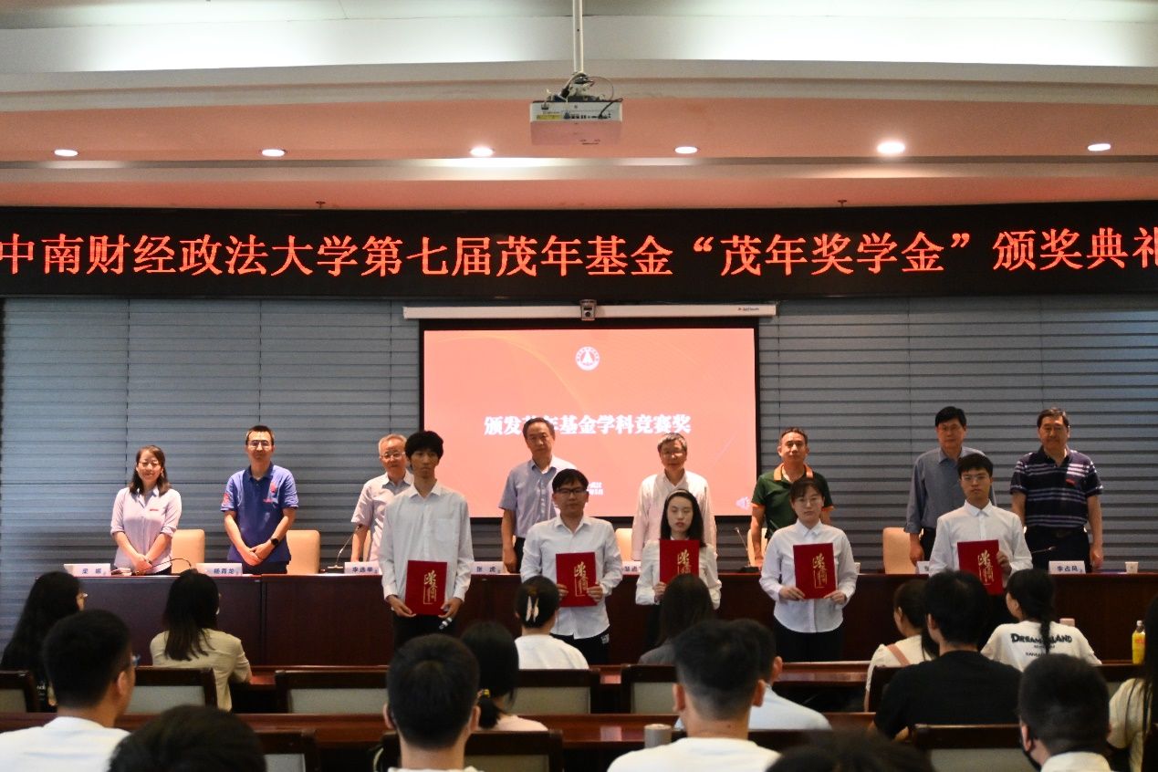 (通讯员:舒鑫才 齐雨萱 孙琪)5月19日下午,中南财经政法大学第七届茂年基金“茂年奖学金”颁奖典礼在中原楼7层会议室举行。中南财经政法大学副校长邹进文,茂年基金发起人代表、深圳博天资产管理有限公司董事长屈定坤,深圳大学李选举教授,中南财经政法大学统计与数学学院校外合作导师张志伟,统计与数学学院院长张虎,党委书记梁娜,副院长杨青龙,院长助理李占风出席本次活动。典礼由统计与数学学院党委书记梁娜主持。