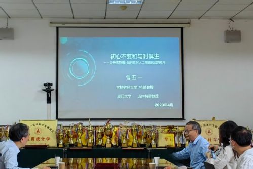 (通讯员:侯雨晨)2023年5月22日下午16:00,由统计与数学学院主办的 “经济统计如何应对人工智能的挑战的思考”学术报告讲座在文波楼401教室成功举办。本次讲座由上海对外经贸大学和吉林财经大学特聘教授曾五一教授主讲,学院部分老师、研究生和博士生参加了此次讲座。