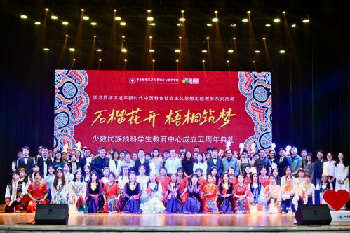 (通讯:舒鑫才 杜艺航)正值全党如火如荼开展学习贯彻习近平新时代中国特色社会主义思想主题教育之际,5月26日晚,统计与数学学院“石榴花开 梧桐筑梦”少数民族预科学生教育中心成立五周年典礼在南湖校区艺体中心音乐厅隆重举行。在这场典礼上,统计与数学学院党委副书记王瑄介绍了中心五年来在人才培养、民族团结教育等方面取得的成绩,工商管理学院辅导员、校团委兼职副书记、全国高校最美辅导员尼加提·艾买提为同学们带来了一场《中华民族共同体建设的青年担当》主题报告,五位往届预科生以其亲身经历分享了他们的“预科故事”,在读预科班学生用精彩的歌舞展现了中华民族大家庭的幸福画卷。典礼用精彩的主题报告、鲜活的预科故事和动人的民族歌舞共同缔造了一场弘扬中华民族传统文化、铸牢中华民族共同体意识的主题教育。