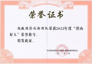 自2014年“洪山好人”推选活动举办以来,学院积极做好宣传发动、个人申报、审核推荐工作,将“洪山好人”推选同主题教育相结合,激励师生奋发有为,大力弘扬社会主义核心价值观,推动形成崇德向善、爱心传递、群星璀璨的生动局面。6月15日全员大会上,张虎院长、梁娜书记为指数经济创新团队和孟祥兰颁发荣誉证书与奖章。