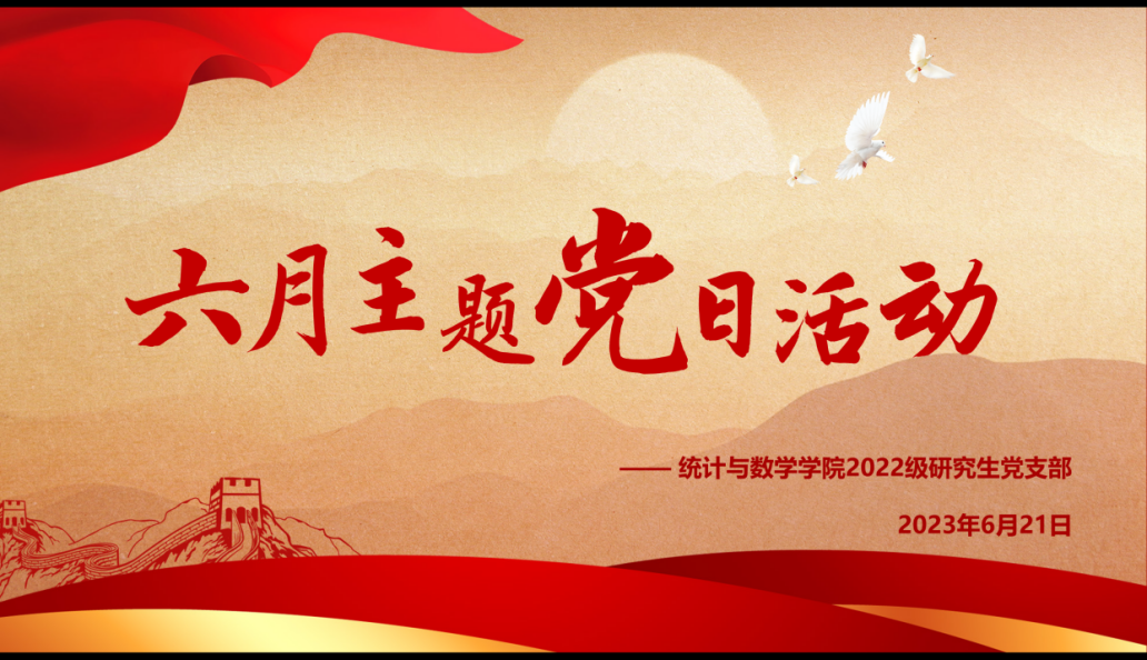 (通讯员:胡思怡)为深入学习贯彻落实党的二十大精神,进一步扎实开展学习贯彻习近平新时代中国特色社会主义思想主题教育,丰富学校“1+N”系列主题教育学习实践活动形式内容,推动主题教育入脑入心、见行见效,统计与数学学院2022级研究生党支部于6月21日组织开展六月“忆初心、担使命、强党性”线上主题党日活动,院党委书记梁娜出席本次活动,活动由2022级研究生党支部书记胡思怡主持,学院2022级研究生党员参加学习。
