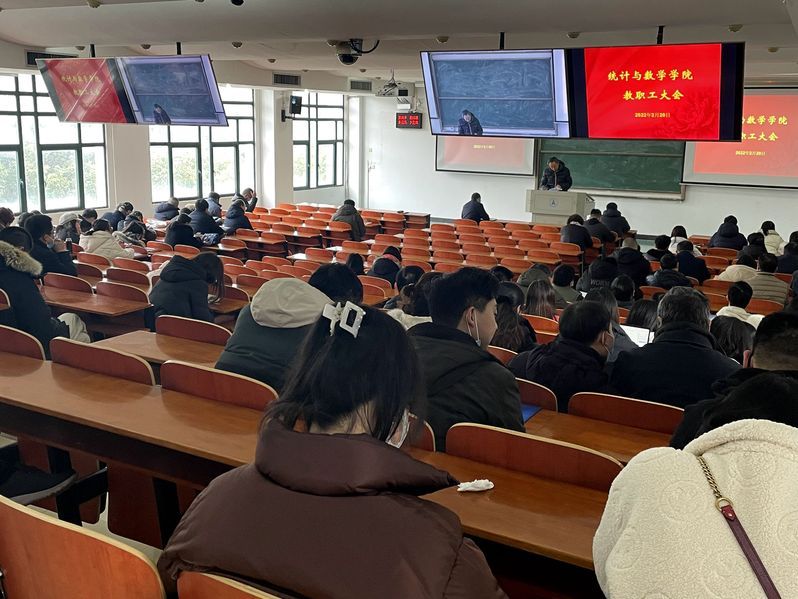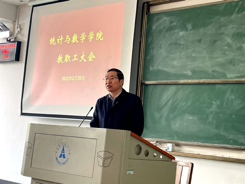 2月20日下午,统计与数学学院在文波楼305教室召开全体教职工大会。会议传达了校党委书记栾永玉来院调研所作指示精神和学校2022年春季工作会议精神,安排部署了新学期重点工作任务。大会由院长张虎主持。