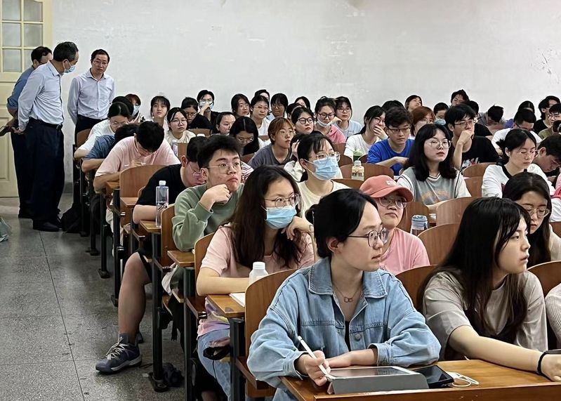 4月25日下午,检查组一行先后来到文波楼、文澜楼教室,现场检查了学院教师授课、学生课堂纪律等情况。课间,检查组与任课教师进行了交流,详细询问了课程进度及学生学习情况,检查组对教师的授课方式、教学安排和良好的课堂秩序给予充分肯定,并鼓励教师充分发挥课堂教学的育人主渠道作用,在课堂教学设计、教学研究、教材建设等方面积极探索,不断提升教育教学能力。