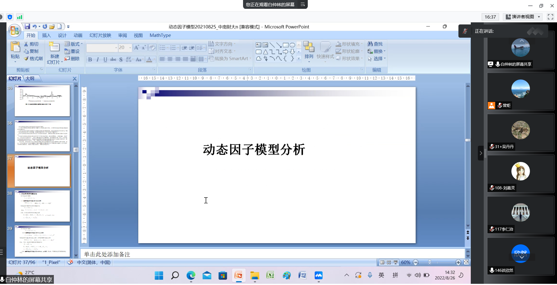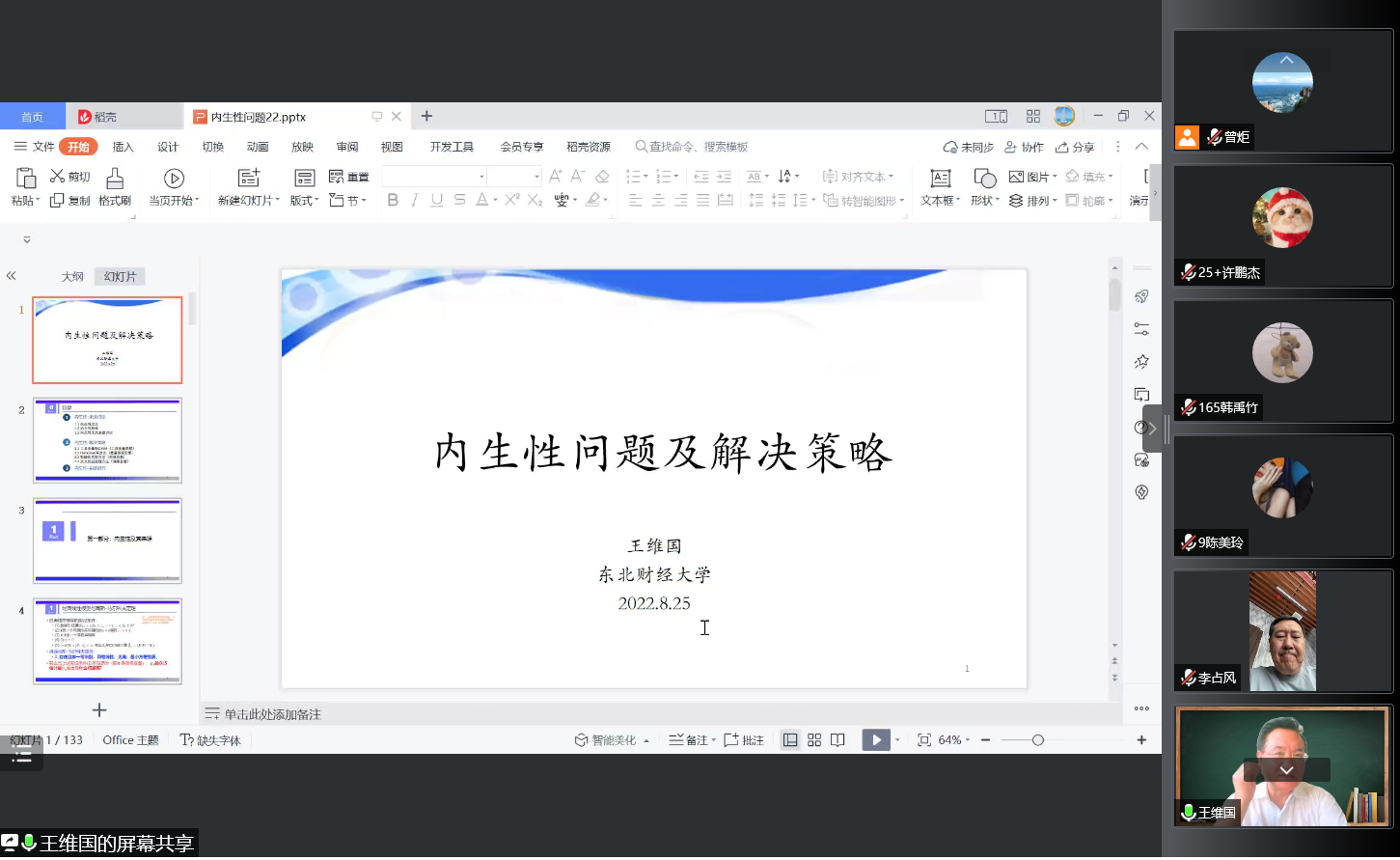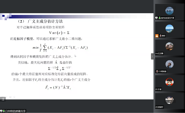 8月26日,随着白仲林教授关于“动态因子模型分析”讲座分享的结束,2022年中南财经政法大学计量经济学和科学研究方法暑期系列讲座圆满落幕。