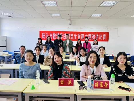 喜迎二十大,建功新时代,奋进新征程。为丰富研究生党建活动形式和载体,展现研究生群体奋发向上的精神风貌,积极营造喜迎党的二十大的浓厚氛围,10月12日下午,统数研会在文澴楼515教室开展了“不忘初心跟党走•青春筑梦新时代”研究生党建主题演讲比赛。研办主任、2022级辅导员侍夏芳老师、院研会主席辛悦同学、副主席经澳同学团担任评委。