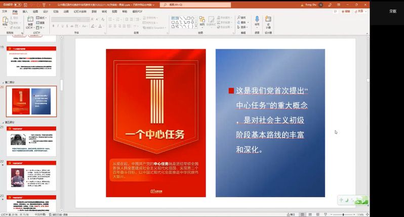 会上,荣枢老师以党的二十大中首次提出的一个“中心任务——团结带领全国各族人民全面建成社会主义现代化强国、实现第二个百年奋斗目标,以中国式现代化全面推进中华民族伟大复兴”为切入点,深入浅出地讲解了“中国式现代化”的内涵及其发展历程,让我们对如何更好地践行“中国式现代化”有了更加深入的理解和感悟。走“中国式现代化”道路离不开科技、离不开人才。荣枢老师指出,作为“中国式现代化”道路上的主力军、生力军和后备力量,不管走到哪里,都应该为祖国的复兴、发展和“中国式现代化”道路贡献自己的力量。