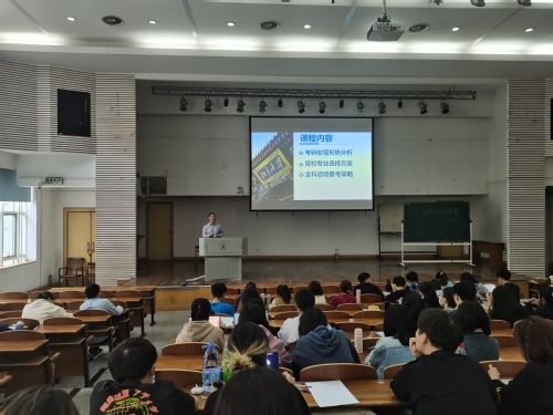 之后,谭老师正式做考研分享。首先,他对近几年考研的形势做了宏观分析,他强调,如今的大环境下竞争压力较大,因此在考研时学校和专业的选择报考极其重要。紧接着,他针对我院未来能报考的专业做了详细讲解与指导。最后,由浅入深,他将考研的四个科目复习的时间点做了详细规划,并向同学们提供发放了部分学习资料。