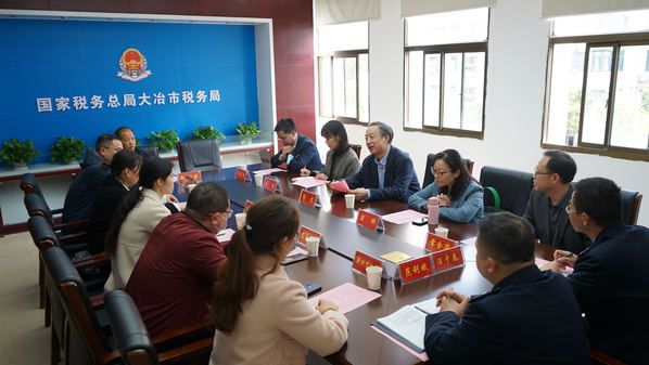 国家税务总局大冶市税务局党委委员、副局长范利斌主持调研座谈,国家税务总局大冶市税务局与会代表介绍税务系统优化税收营商环境、精准纳税服务的工作开展情况,院领导分别介绍学院学科建设、人才培养、社会服务特色及学生就业发展情况,大冶新四方机械有限公司、大冶宏春纺织有限公司、湖北日斗金节能保温建材有限公司等7家民营企业分别介绍近年来企业生存现状、人才需求和发展目标。通过调研旨在发挥学院专业学科优势,深入调研了解湖北县域经济发展,为民营企业、小微企业发展把脉问诊,为学生深入了解国情社情民情开展实习实践开拓渠道,搭建校地、校企协同合作平台,促进产学研深度融合,发挥高校智库作用切实服务地区经济发展。