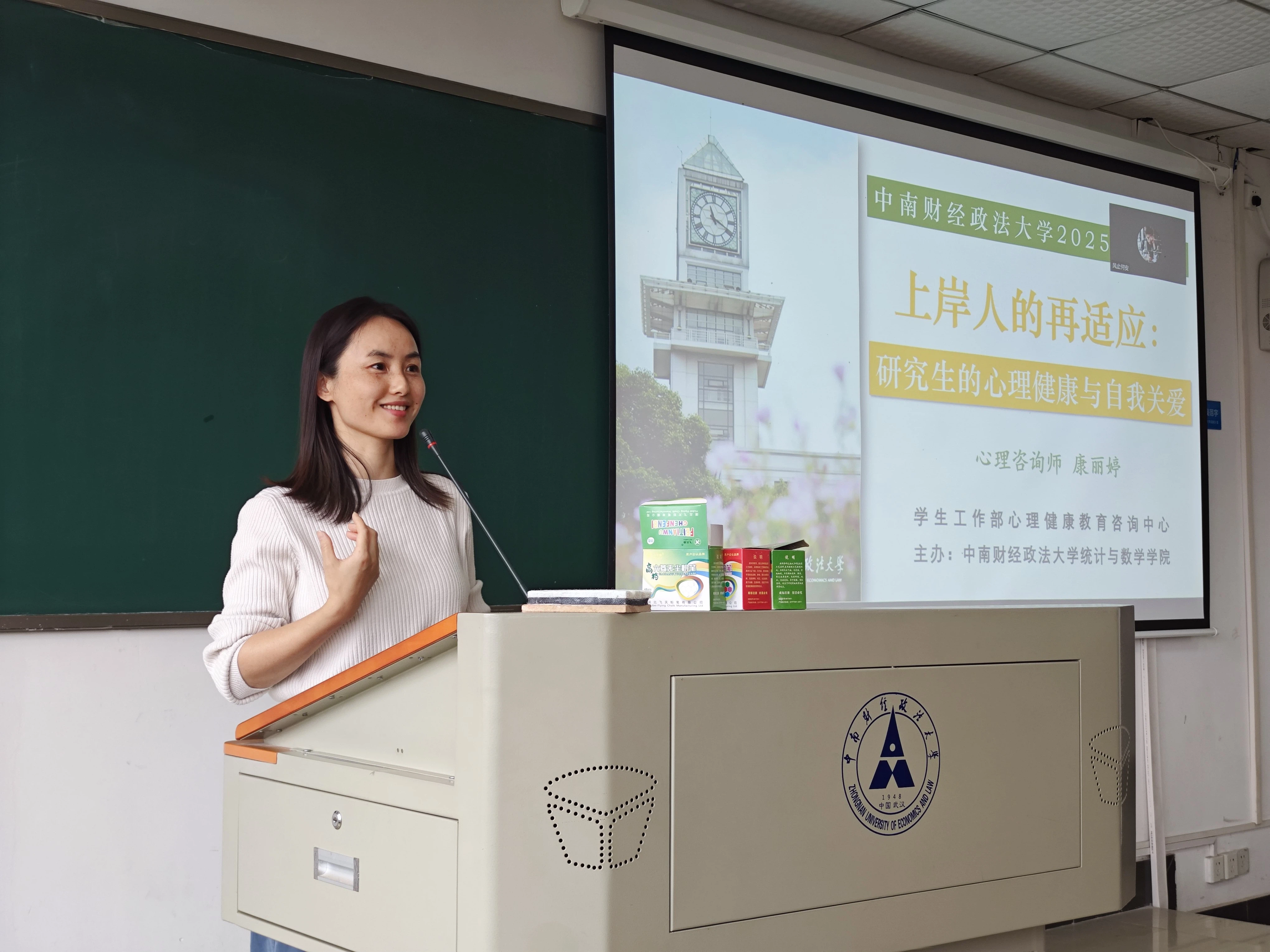 学校心理健康教育咨询中心康丽婷老师介绍了研究生阶段常见的心理适应问题,并提出应对建议,同时介绍了学校心理咨询服务的获取途径,提醒同学们关注心理健康、互帮互助。