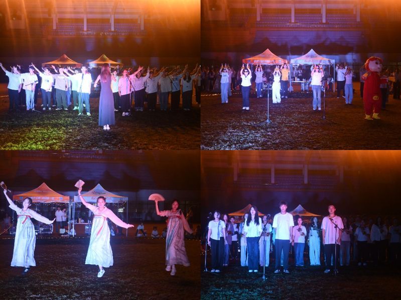 (通讯员:刘童舒 刘嘉音)2025年9月26日晚,统计与数学学院2025级新生“青葱记艺”中秋迎新晚会在首义校区大运场成功举办。预科2025级辅导员艾合买提·吐尔地老师、本科2022级辅导员伊帕尔古丽·吐尔孙江老师、本科2025级辅导员周潇老师出席活动,全体2025级本预科新生参加。