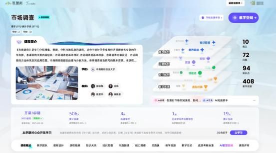 同时,课程搭载AI智能助教系统,通过“学前诊断”生成“一生一案”的个性化学习路径,AI助教、AI陪练提供7*24小时在线支持,助力学生高效掌握问卷设计、数据采集、统计分析等核心技能;在评价环节,系统实时采集视频观看时长、习题正确率、讨论参与度等过程性数据,替代单一期末考核,实现教学反馈的精准化。