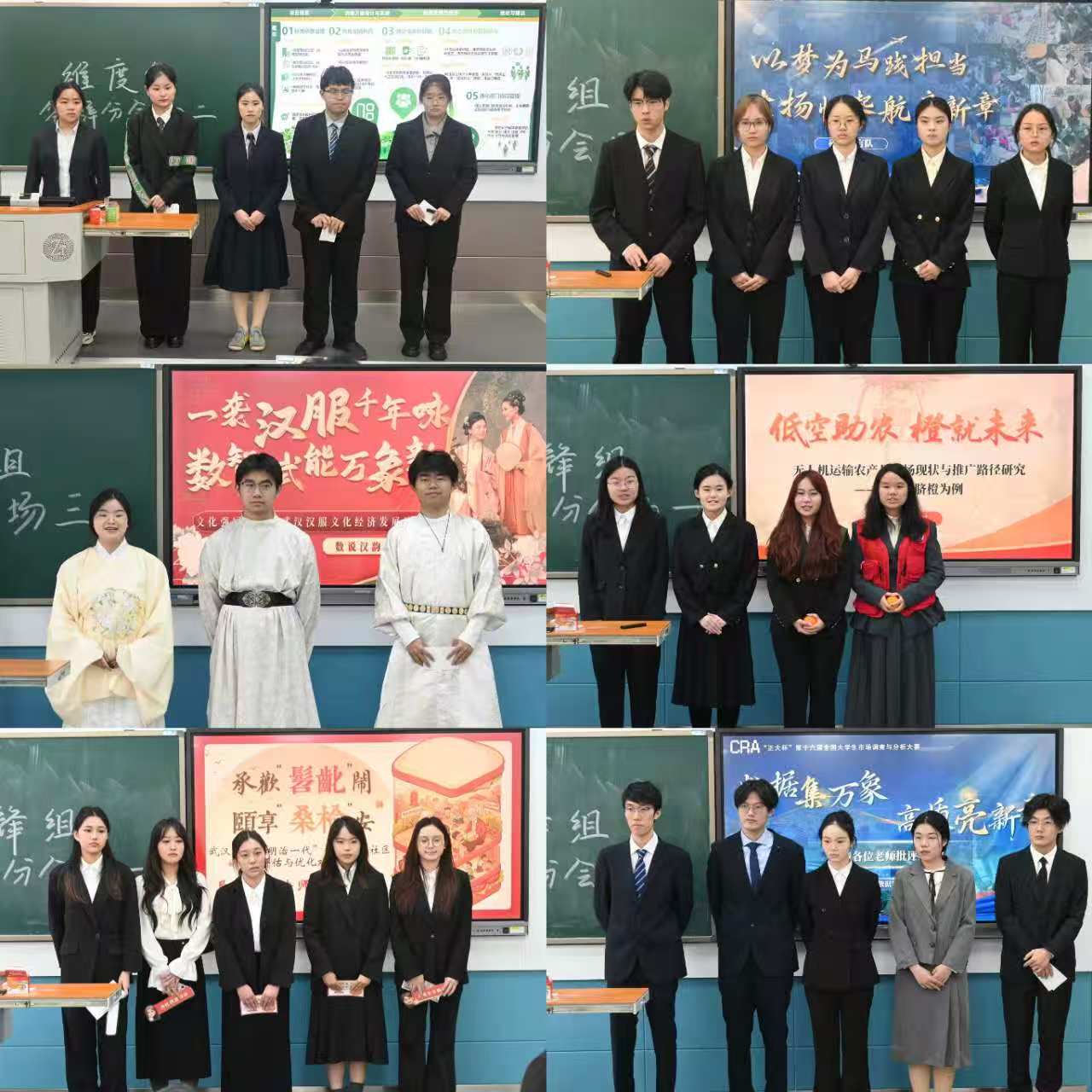 比赛分为研究生赛道、本科生赛道,各参赛团队围绕调研方案设计、数据模型分析、研究结论与对策建议等核心内容,进行了全面展示与深入阐述。其中,发际线在燃烧队围绕“AI+现代农业”技术服务落地难题,深入探讨了农业经营主体从技术采纳意愿到支付行为的决策机制。勇往直前队以新型酱油为切入点,通过产品创新折射当今时代变迁,展现传统产业在新消费趋势下的迭代升级。胡辣汤队则以开封万岁山武侠城为样本,研究揭示沉浸式互动体验对游客情感唤起与行为响应的深层作用机制……各参赛团队主题鲜明、视角多元,充分彰显了同学们立足社会需求、推动创新实践的责任与担当。
