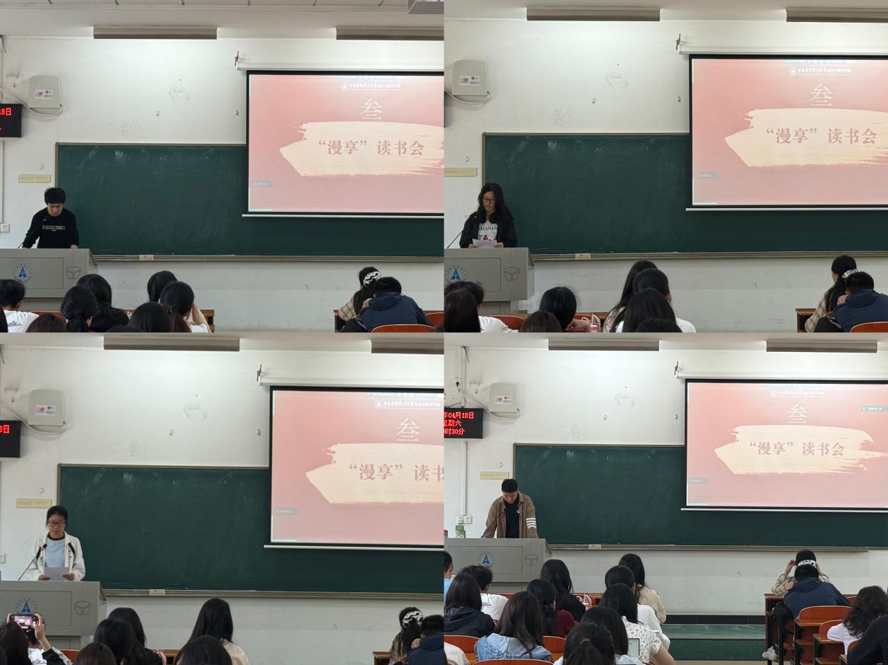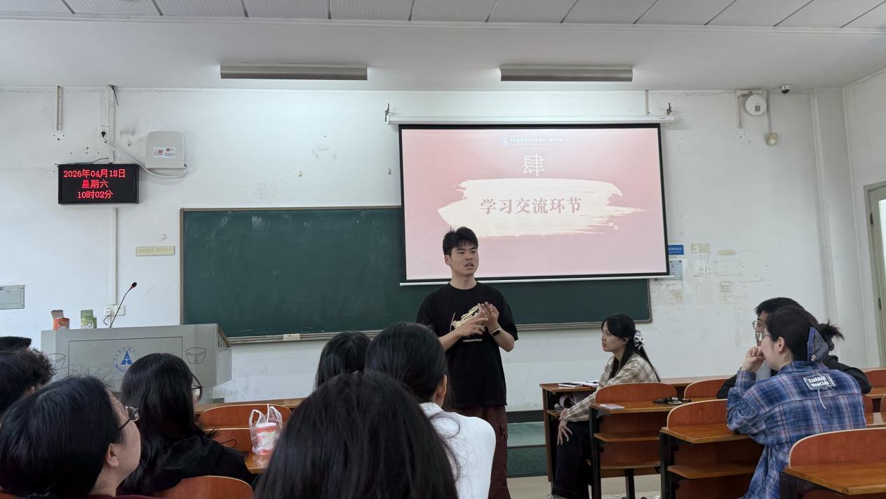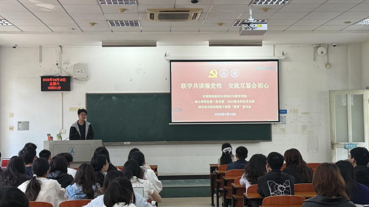(通讯员:蔡烨彤)4月18日,为深入学习贯彻党的创新理论,持续强化党员理论武装与党性修养,推动理论学习与读书实践深度融合,加强本研贯通培养,统计与数学学院2025级硕士研究生第一、第二党支部、2023级本科生党支部联合学院学生会学术部于文波楼208室开展4月主题党日活动暨学习发展中心功能型党支部第十四期“漫享”读书会。三个支部全体党员共同参与本次学习。