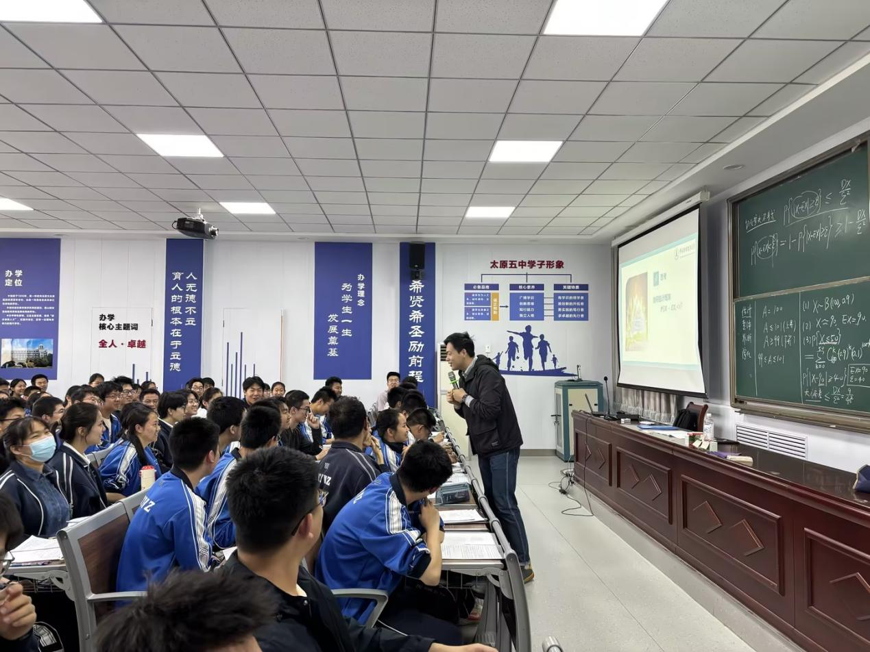 4月24日下午,熊波为太原市多所高中数学教师开展《大学视角下的概率压轴题—四类底层模型与思想》专题培训。培训立足大学数学教学视野,深度剖析高考概率题型的命题逻辑、核心原理与解题思想,帮助一线教师拓宽教学维度、提升备考指导能力。参训教师普遍表示,培训内容理论扎实、实践性强,对把握命题趋势、提升教学质效具有重要指导作用。