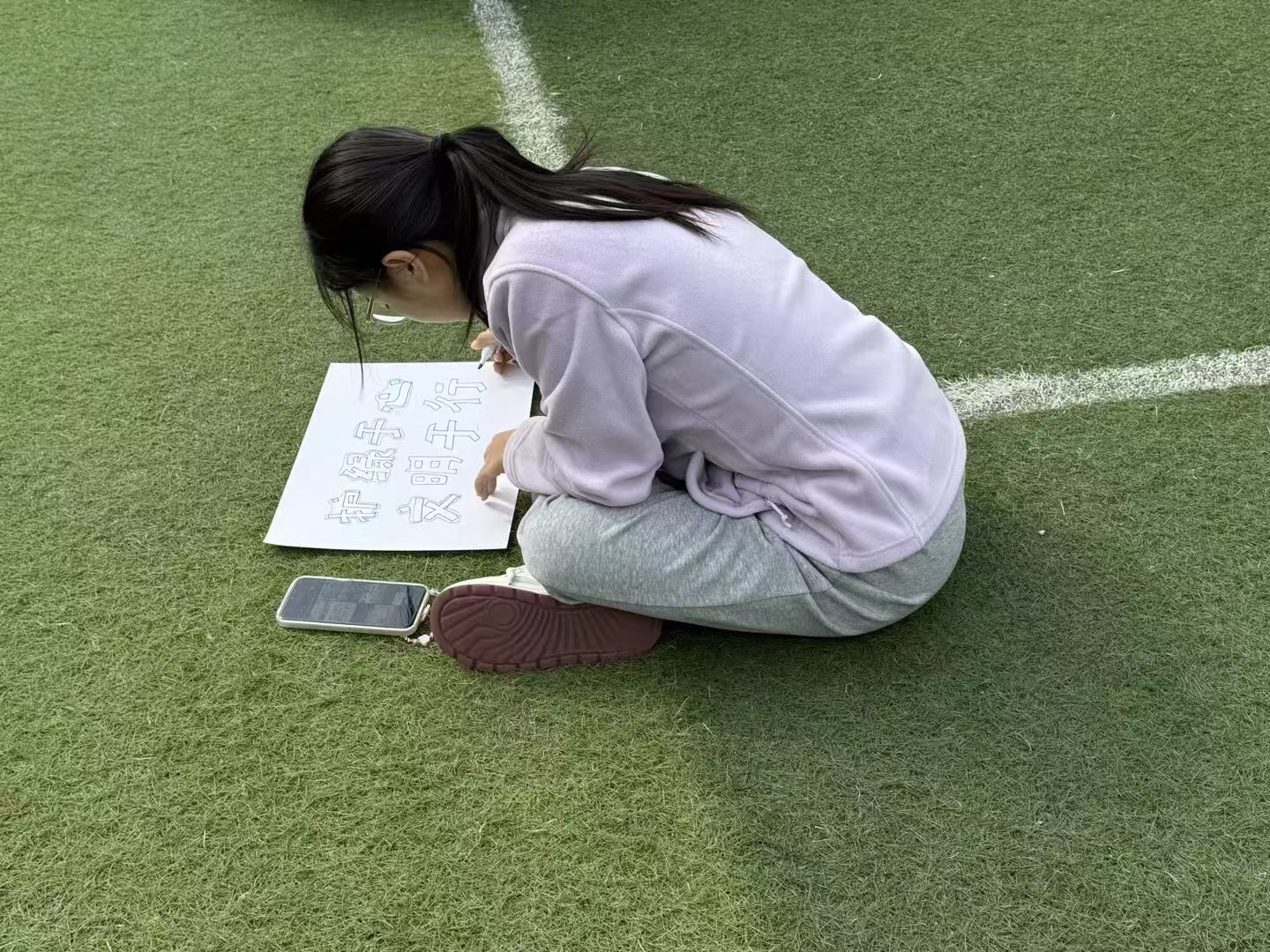 清扫工作结束后,志愿者们以饱满的热情投入到环保标语的绘制中。大家充分发挥想象力和艺术才能,用画笔在卡纸上书写和描绘出环保标语,如“垃圾不落地,文明在手中”“护绿于心,文明于行”等。每一笔勾勒,都凝聚着同学们对美丽校园的热爱和对环保理念的深刻理解。