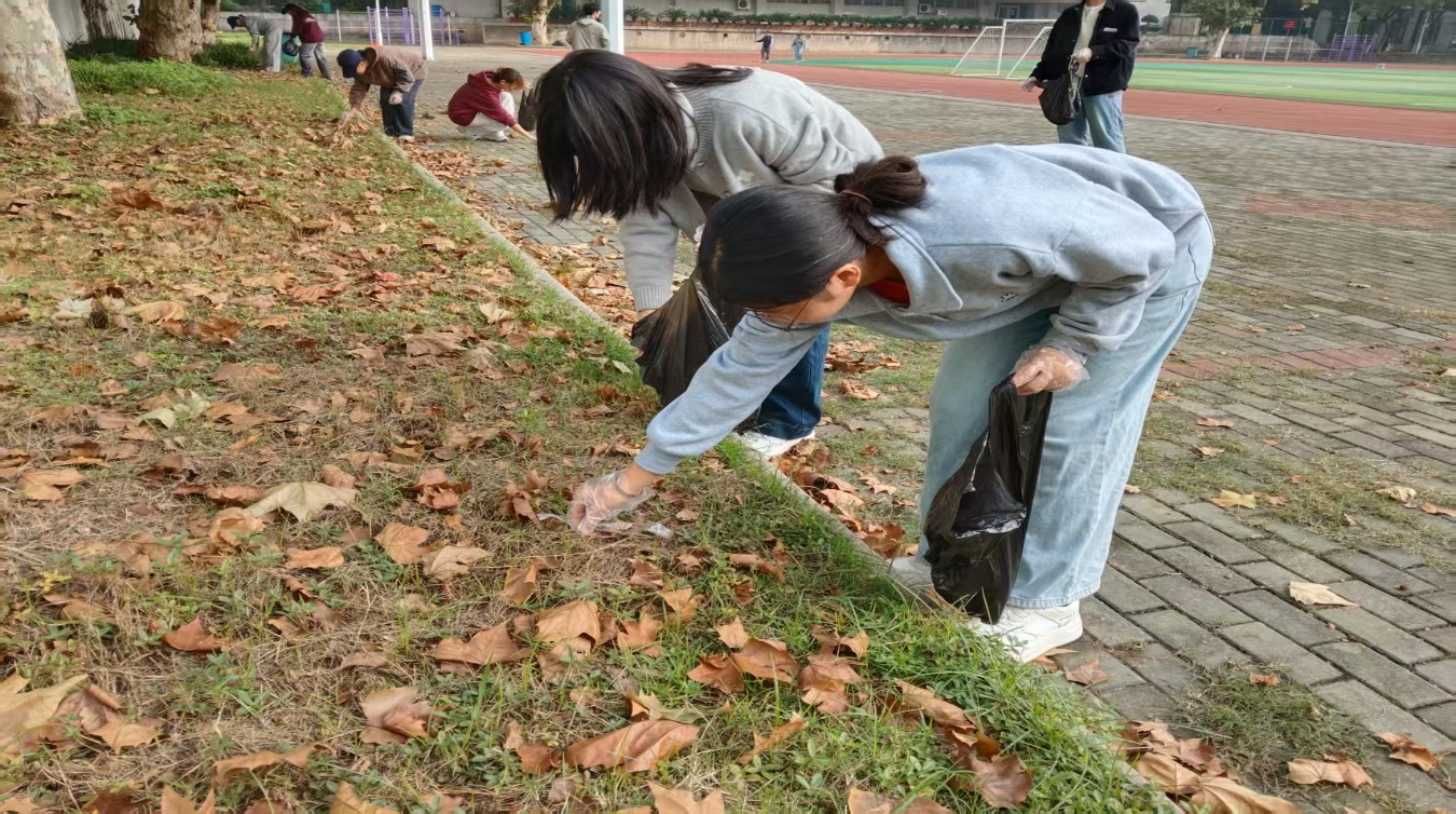 活动负责人向志愿者们介绍了美丽校园建设活动相关事宜,分发了清理工具,并带领同学们在校园内进行垃圾清扫活动。志愿者们手持垃圾袋,分工明确,配合默契,认真清理了草坪、跑道及周边角落的垃圾杂物。经过一番辛勤劳动,南操场的环境变得更加整洁。