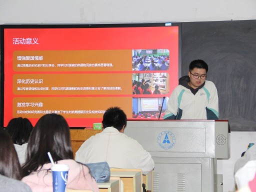 活动伊始,团支书朱子聪组织全体同学观看抗美援朝纪录片,重回那场长达三年的艰难斗争。纪录片中惨烈的战争画面、冰冷的国力数字对比以及战后英雄老兵的回忆,都给同学们留下深深的印象。重温那段历史,大家深刻认识到和平的来之不易,作为新时代的青年,应该铭记历史,缅怀先烈,只有铭记来时路,才能走好未来路。