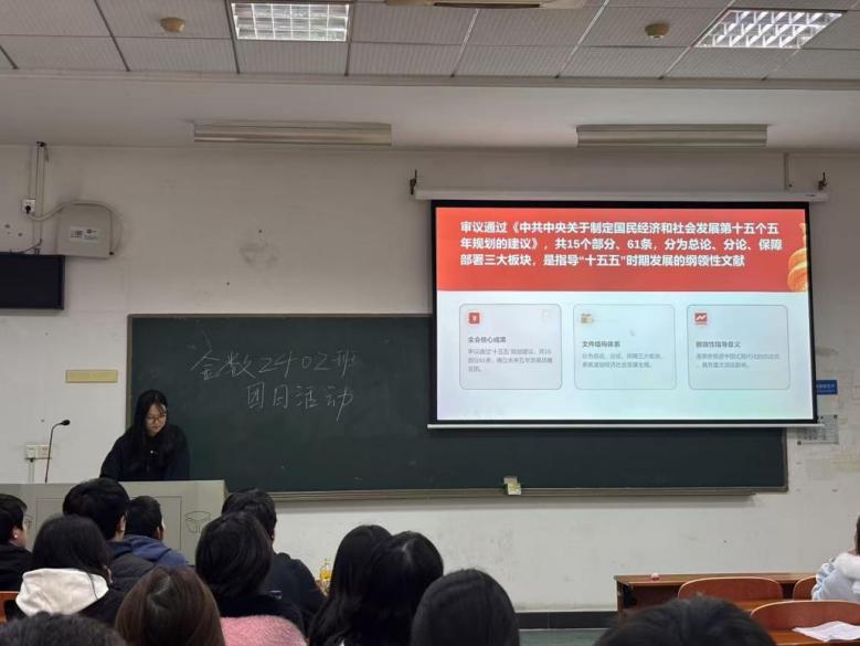 在交流感言环节,同学们踊跃发言,分享学习心得。卜天钧同学表示:“通过今天的系统学习,我更加深刻地认识到国家发展的艰难曲折与巨大成就,作为金数专业的学生,我们更应夯实数理基础,未来用精准的数据分析服务国家金融战略。”金米熹同学分享道:“青春逢盛世,奋斗正当时。这次团日活动让我颇有感触,作为新时代青年,我们要将小我融入大我,把青春汗水挥洒在民族复兴的伟大征程上。”