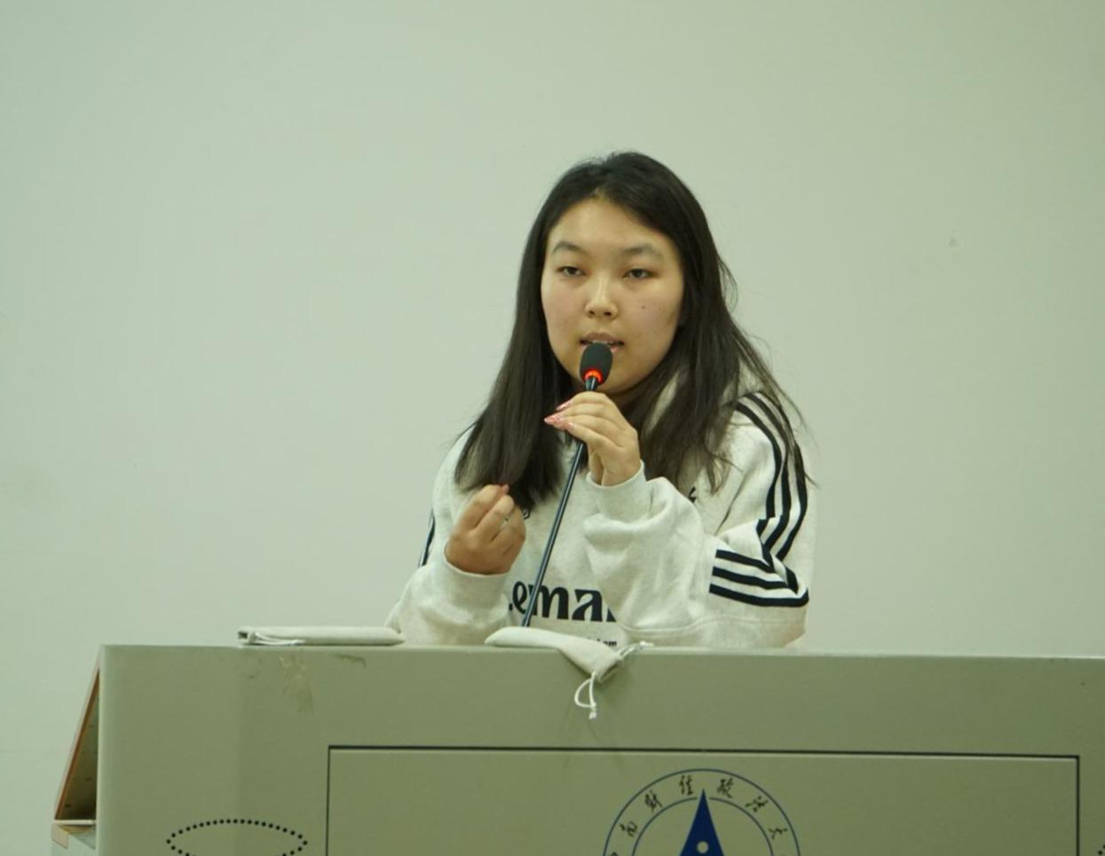 努尔则耶·阿力木着重介绍了金融专业的学习内容,强调了高数和概率论的重要性,并结合自身就读体会,分享自己的学习收获,如拓宽视野、获取丰富信息和建立经济思维。最后,她向预科同学送出寄语,希望大家永远对自己充满信心。