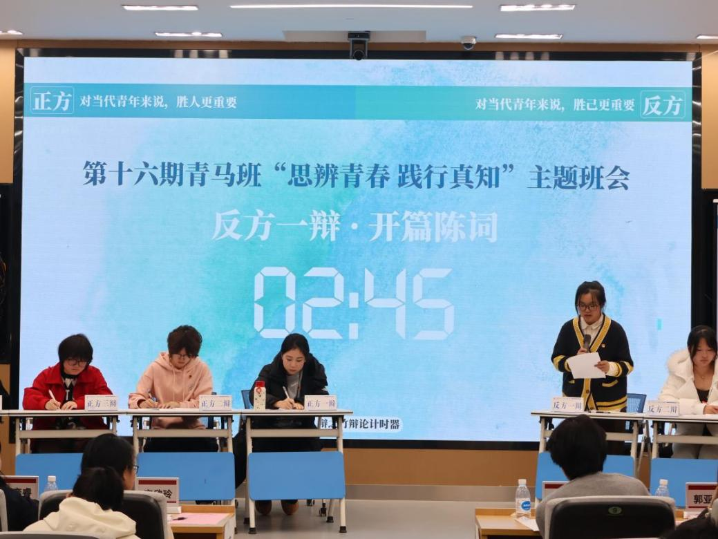 (通讯员:邵清扬 余思琪)为提升青马班学员逻辑思维、团队协作与社会责任意识,统计与数学学院第十六期青年马克思主义者培养工程培训班“思辨青春,践行真知”主题班会于12月6日在南湖校区文波智慧教室112成功举行。活动以辩论赛为载体,通过两场思想交锋引导学员深化对时代命题的理解,展现当代青年昂扬向上的精神风貌。