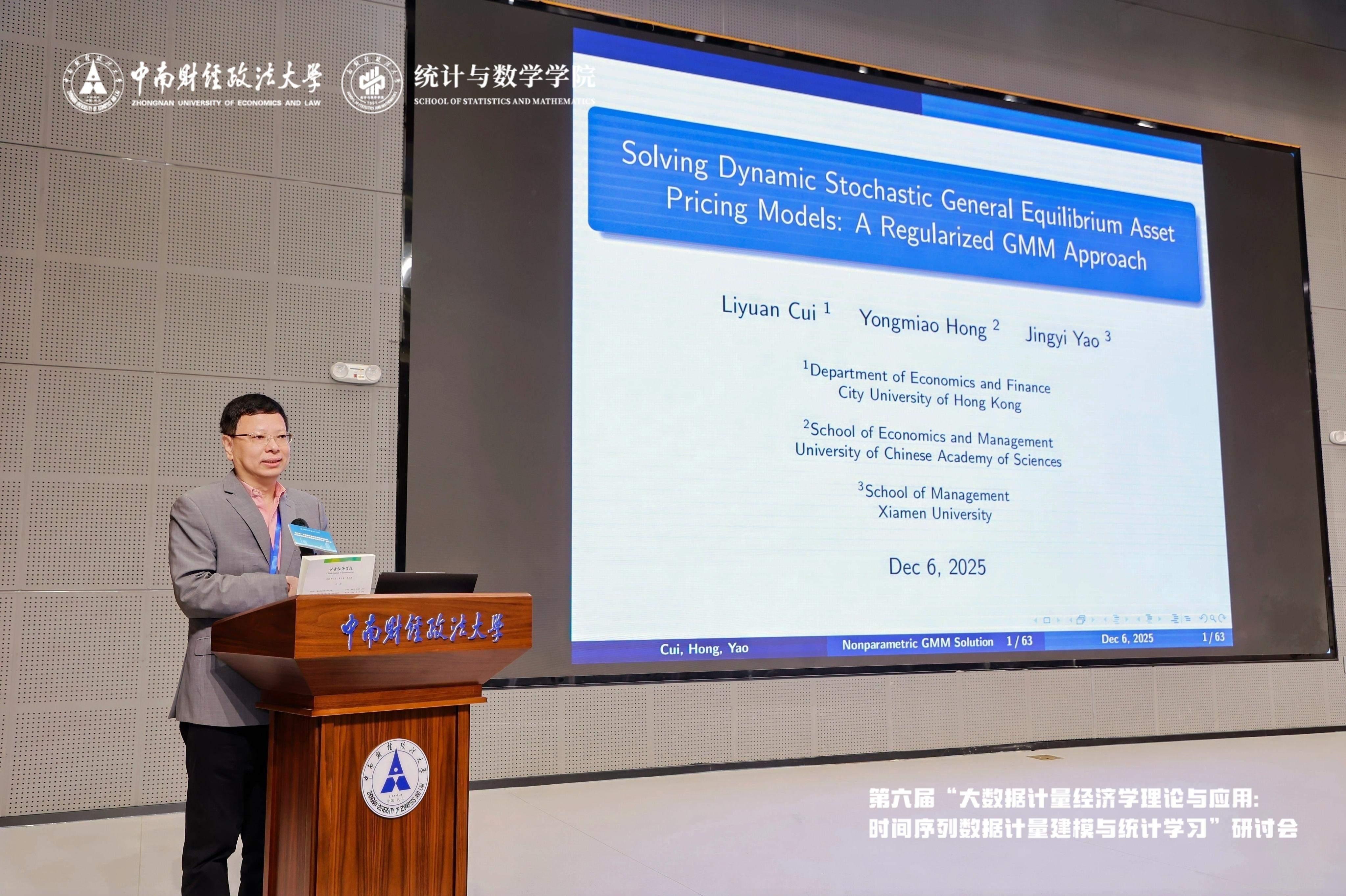 洪永淼教授以“Solving Dynamic Stochastic General Equilibrium Asset Pricing Models: A Regularized GMM Approach”为主题,介绍了一种求解动态均衡资产定价模型中未知函数的统计学习方法,无需依赖线性化或参数化假设,可处理高维状态变量与多重未知函数,且其大样本性质已得到确立且有限样本性能稳健。