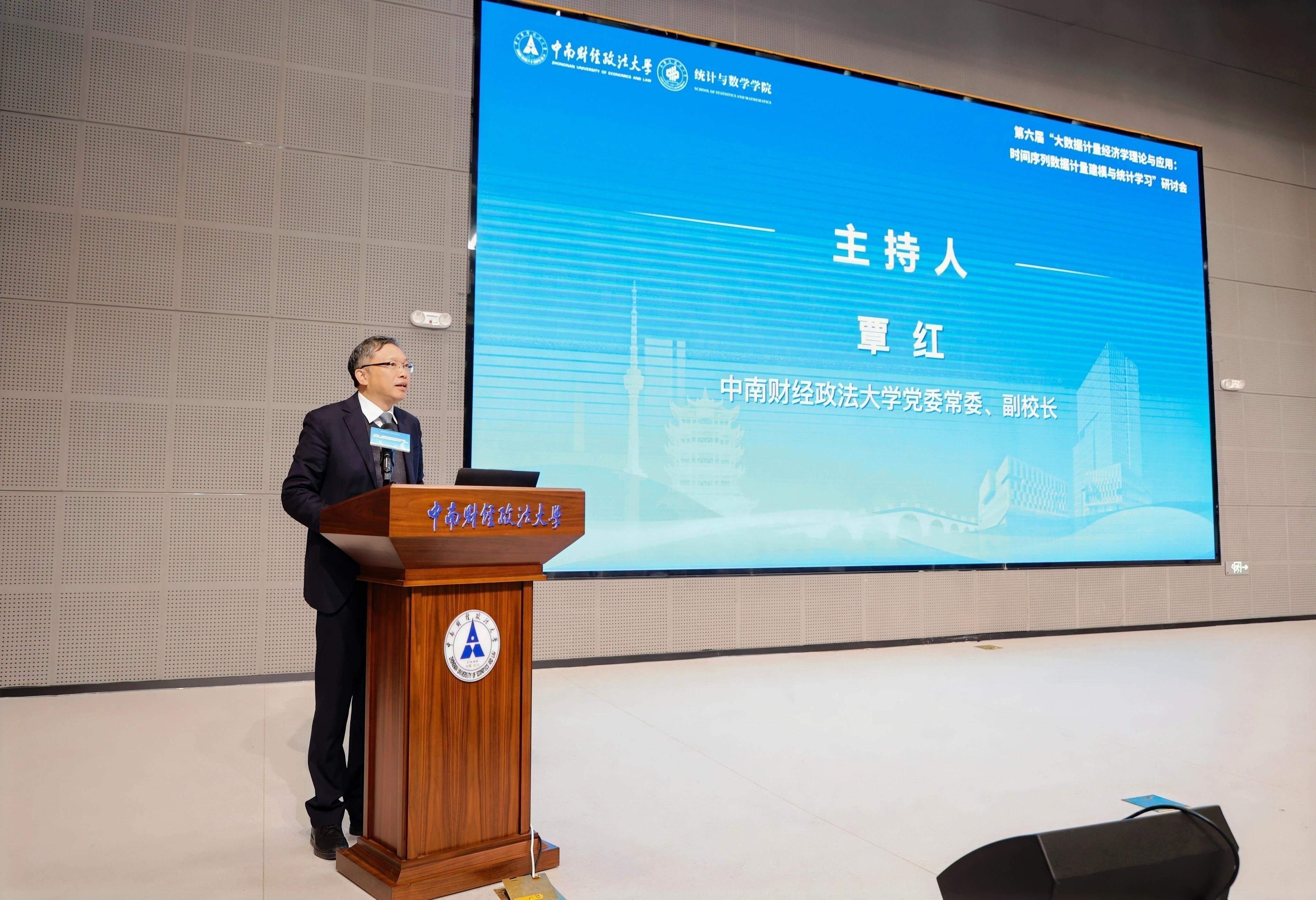 本届研讨会由《计量经济学报》编辑部、厦门大学-中国科学院“计量建模与经济政策研究”基础科学中心、中南财经政法大学联合主办,中南财经政法大学统计与数学学院承办,中国科学院数学与系统科学研究院预测科学研究中心和厦门大学邹至庄经济研究院协办,汇聚了来自清华大学、北京大学、英国剑桥大学等35所高校的近百名国内外专家学者。开幕式由中南财经政法大学党委常委、副校长覃红主持。
