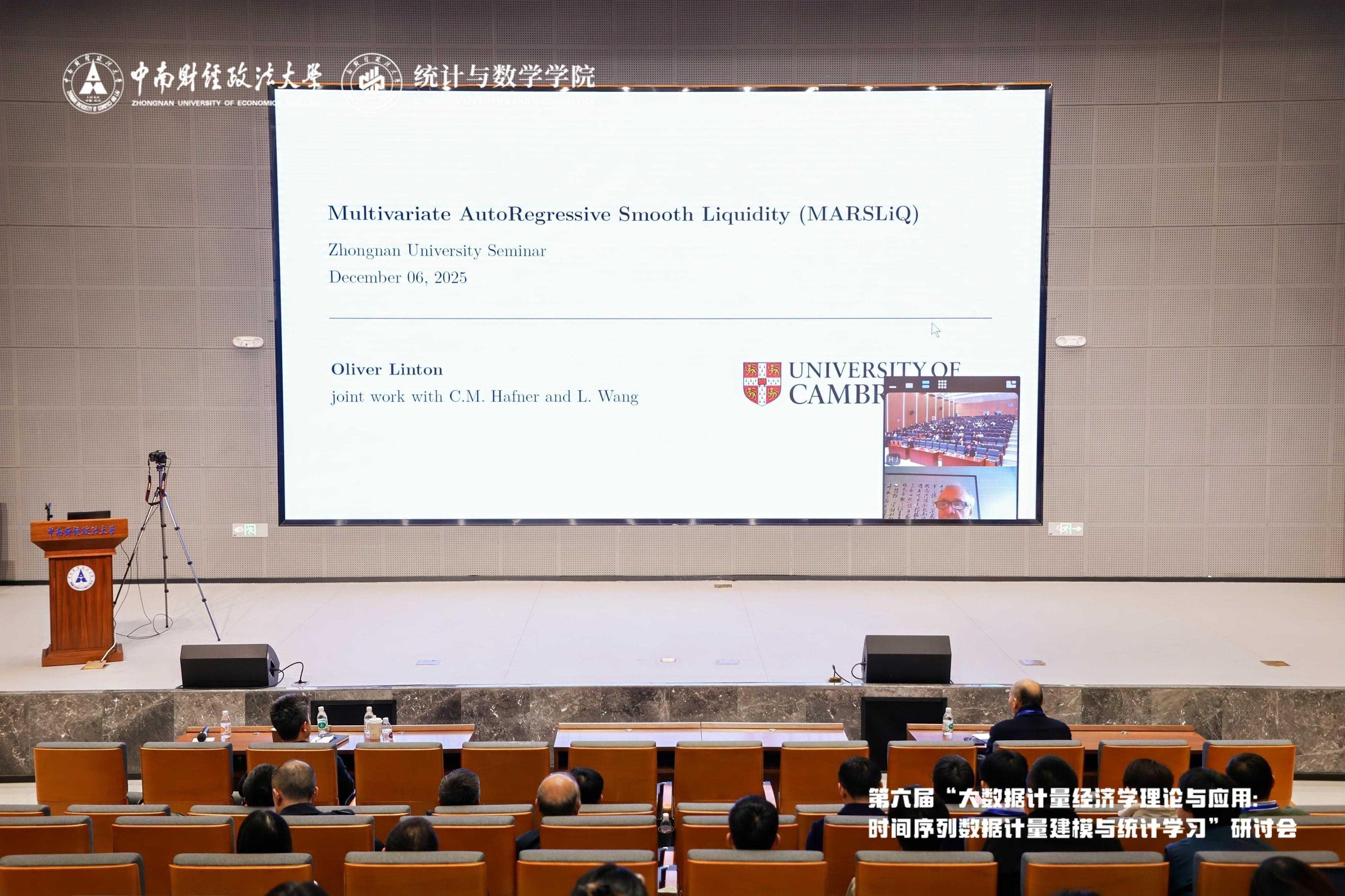 英国剑桥大学经济学院院长Oliver Linton教授以“Multivariate Auto Regressive Smooth Liquidity (MARSLiQ)”为主题,介绍了融合慢变趋势与短期动态的多元日度流动性模型,该模型通过分解资产流动性成分、纳入自回归反馈与指数溢出效应,既实现高维场景可处理性,又能精准量化流动性冲击的市场传导机制。