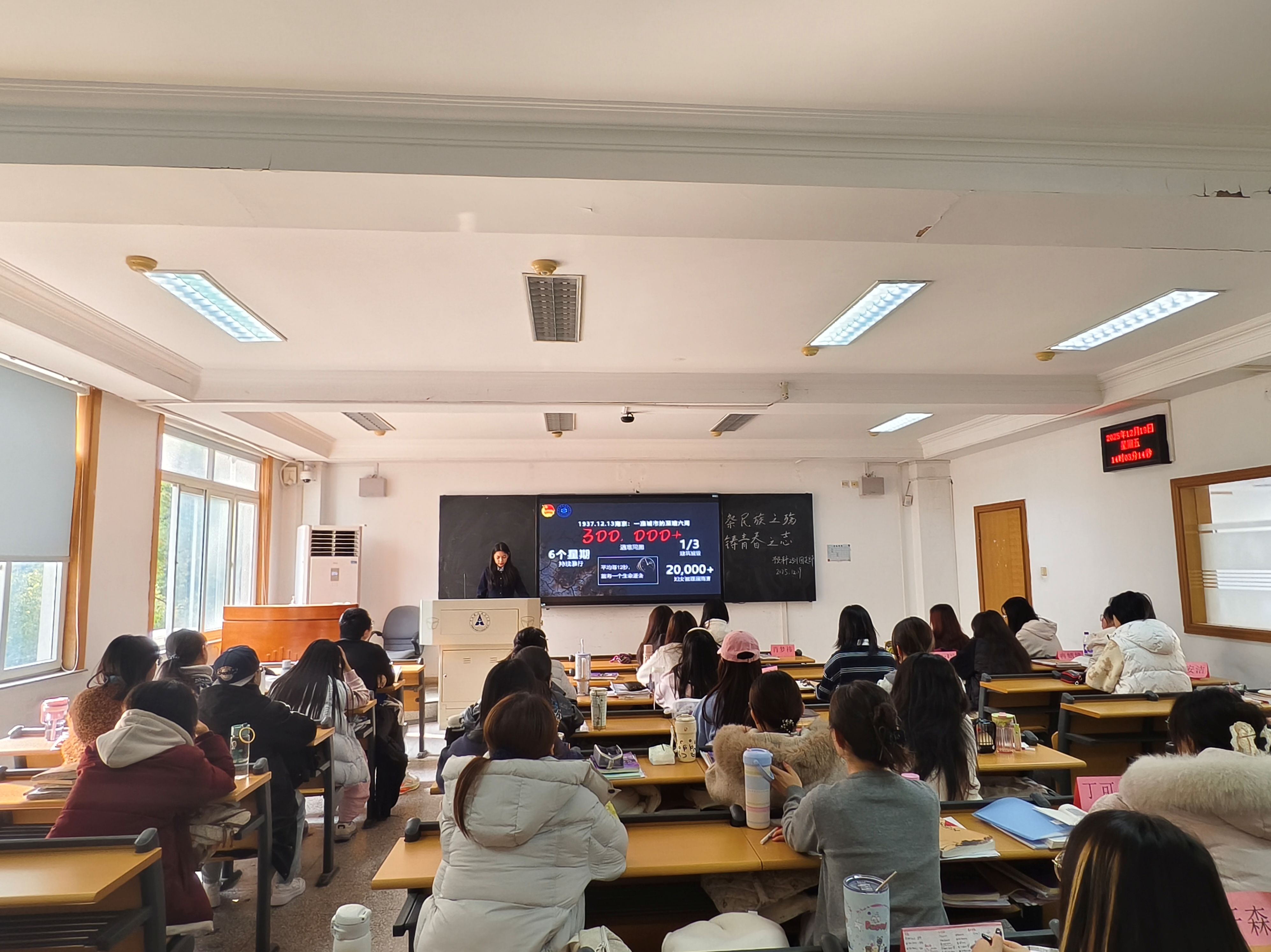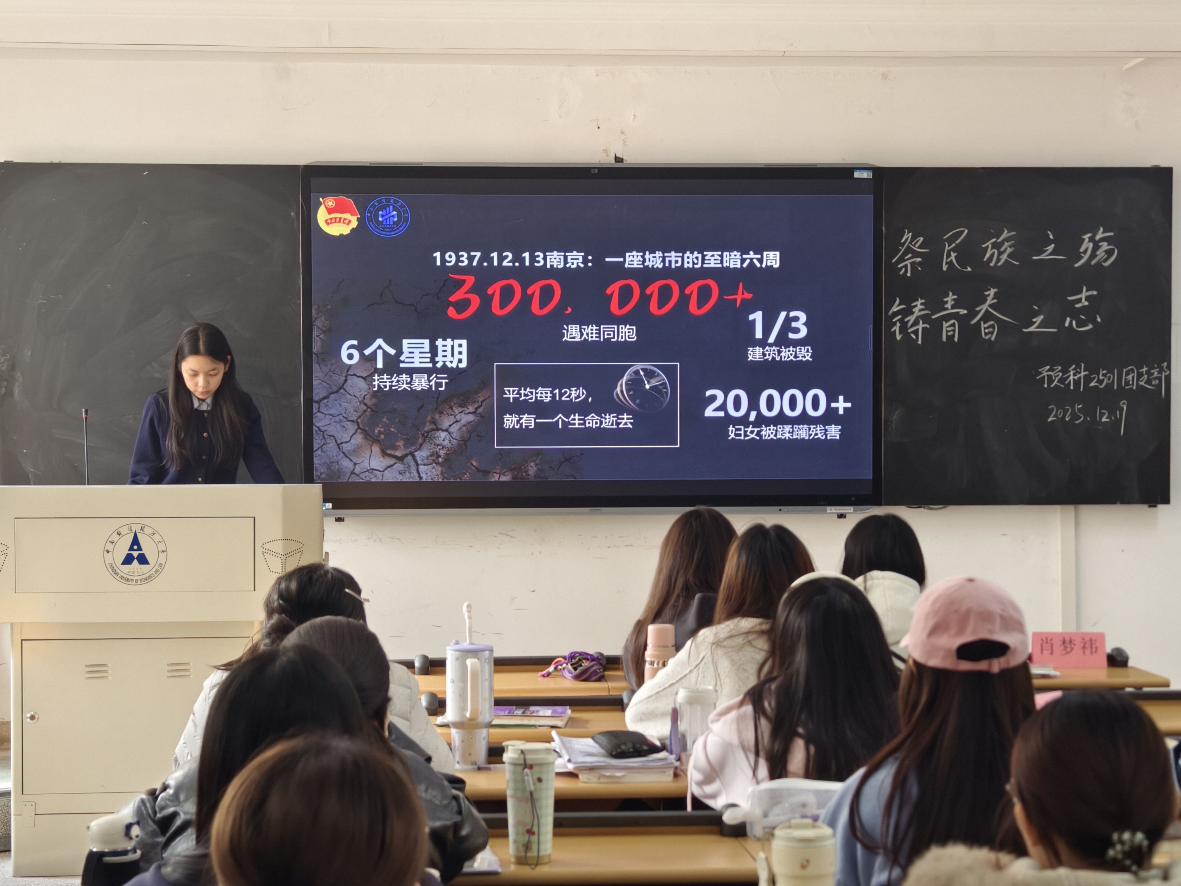 (通讯员:邓劼锋 江之胜)为铭记民族历史,传承爱国精神,12月19日,预科2501团支部开展“以史为鉴守和平,青春立志担使命”主题团日活动。全体团员以国之名致哀,以史为鉴明志,在回望历史中凝聚青春力量,在缅怀先烈中坚定和平信念。