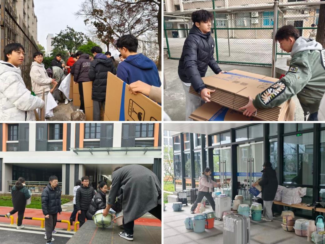 针对搬迁工作的繁杂性与特殊性,学院坚持问题导向,注重人文关怀。在物品管理方面,专门设立贵重与易碎物品临时存放点,引导学生分类打包、集中保管。各班级在辅导员的带领下统一进行行李封装,严格落实“一人一签、一物一标”的实名制管理,确保行李流转可追溯。同时,学院积极倡导“文明离宿”,同学们主动清理宿舍、归还公物,展现了统数学子良好的精神风貌和责任意识。