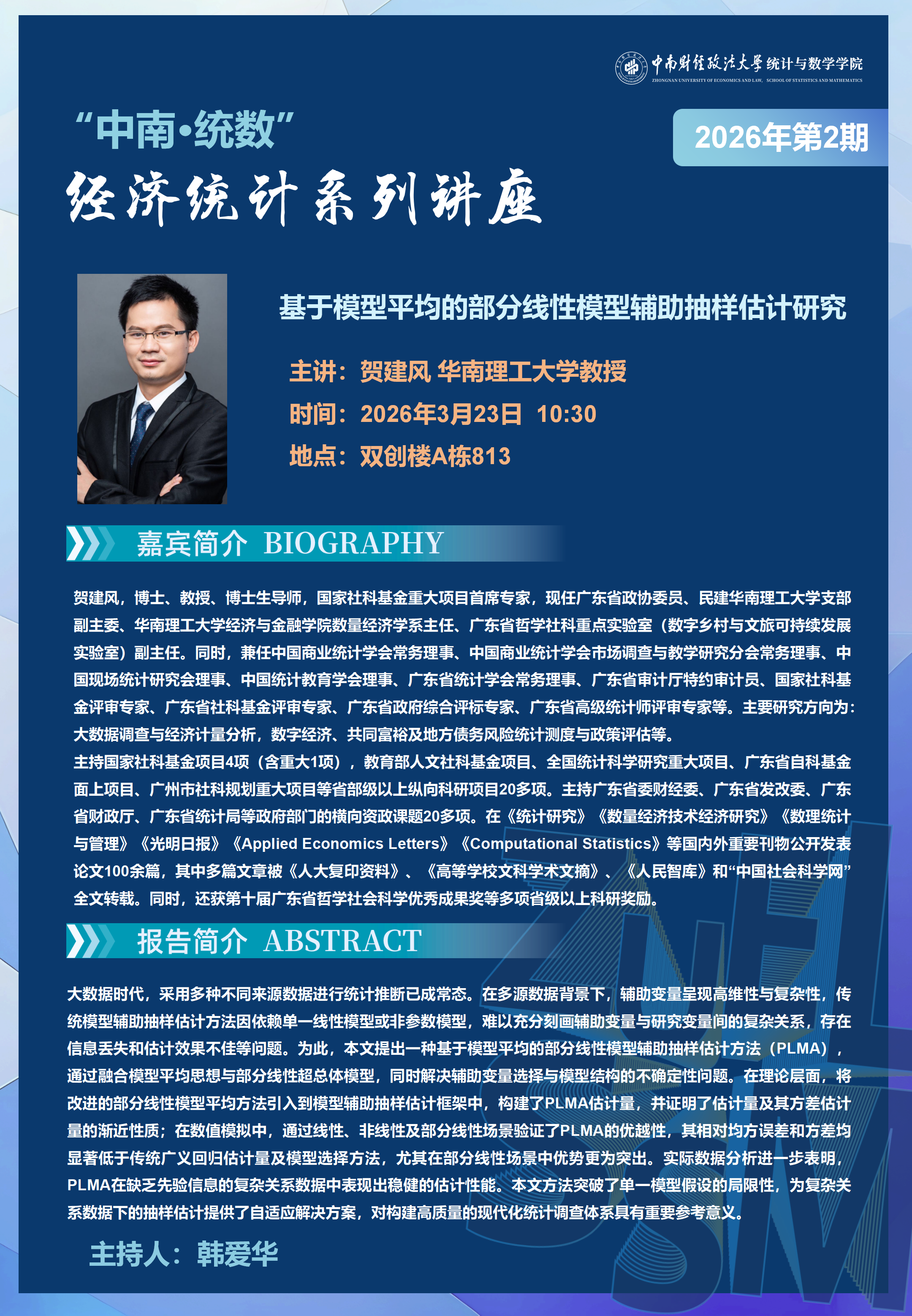 “中南·统数”经济统计系列讲座(2026年第2期)