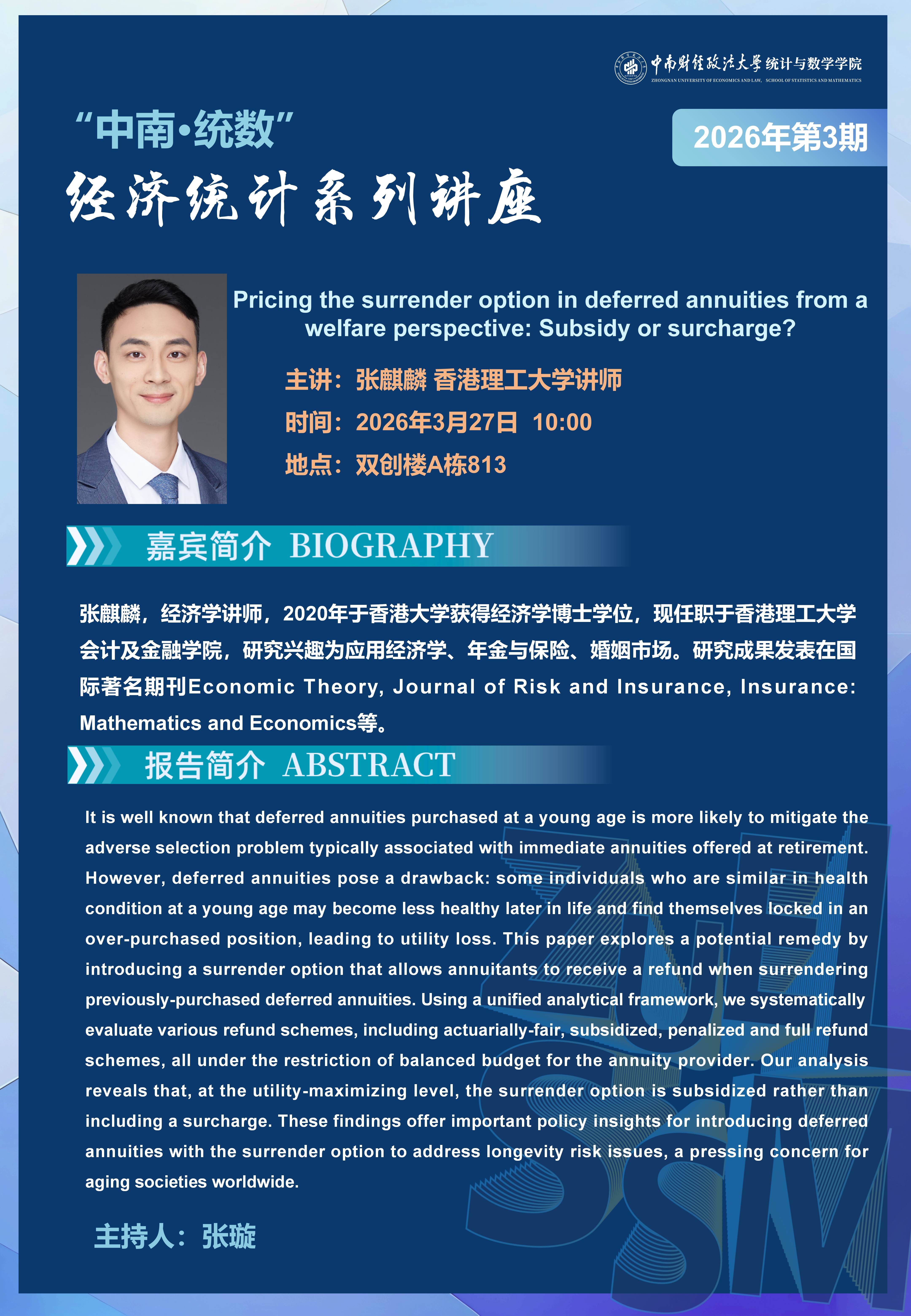 “中南·统数”经济统计系列讲座(2026年第3期)