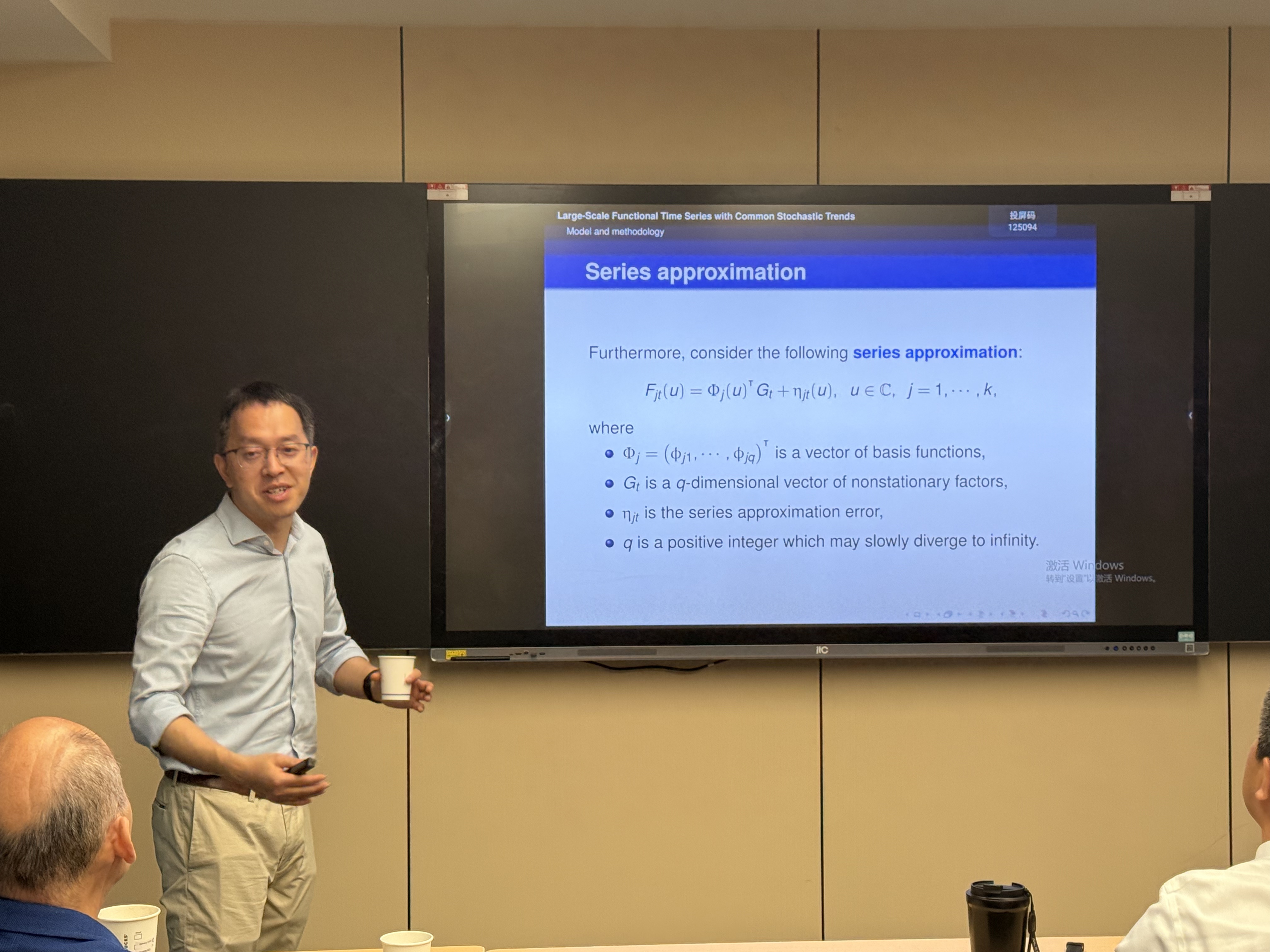 报告中,李德柜教授首先从高维曲线时间序列分析的现实挑战切入,系统梳理了大规模数据建模的核心瓶颈。他指出,传统时间序列方法在处理高维函数型数据时,难以有效捕捉序列间的共同随机趋势,且多数现有方法在维度与样本量同步发散时的理论性质不完善,无法满足金融、环境等领域大规模数据的分析需求。针对这一方法论难题,李德柜教授重点介绍了团队的创新研究成果:提出针对含共同随机趋势的大规模曲线时间序列的双函数因子模型框架,通过函数型主成分分析技术实现共同随机趋势与因子载荷的有效估计,建立了维度与样本量同步发散下的收敛性与极限分布理论,同时解决了非平稳因子协整场景下的模型估计问题。研究通过蒙特卡洛模拟与澳大利亚温度曲线、标普500股票价格曲线等实证应用,充分验证了方法的有效性与实用性。