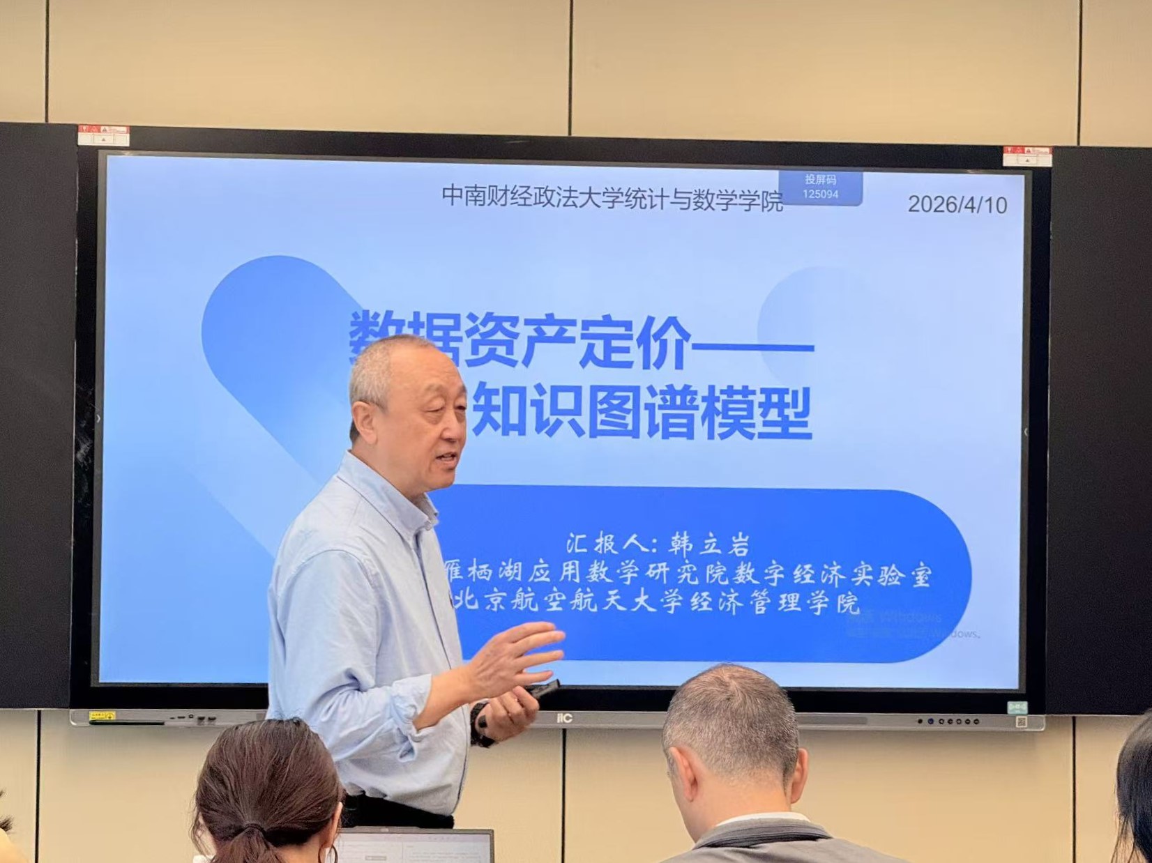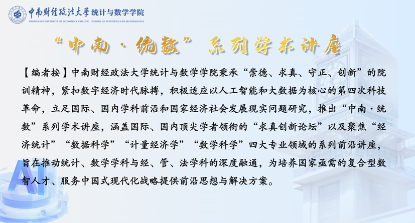 (通讯员 吴志伟 闵靖)4月10日上午,由统计与数学学院主办的“中南·统数”计量经济学系列讲座(2026年第5期)在双创楼A栋510教室成功举办。北京雁栖湖应用数学研究院数字经济实验室研究员韩立岩受邀以“数据资产的知识图谱定价模型”为主题开展前沿学术报告。讲座由统计与数学学院李庆副教授主持。