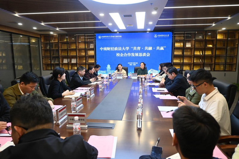 (通讯员 伊帕尔古丽 陈玥颐 刘童舒)10月24日下午,中南财经政法大学“共育·共融·共赢”校企合作发展恳谈会在创新创业大楼613会议室顺利召开。德勤华永会计师事务所(特殊普通合伙)武汉分所人力资源经理王晶洁,广东领益智造股份有限公司招聘主管郭雯,杭州市人才市场开发有限公司董事长李子云,湖北联投人力资源岗李汶泽、王浩仰,拓维信息系统股份有限公司招聘总监刘颢文,中安科股份有限公司招聘负责人廖丹妮、刘蓉蓉,珠海格力电器股份有限公司人力资源部部长助理梁海雄等七家用人单位九位企业代表参会,中南财经政法大学就业指导服务中心副主任张艳芸,信息工程学院党委副书记石龙,新闻与文化传播学院组织员吕宗瑛,马克思主义学院研究生工作办公室副主任李祥栋,哲学院团委书记陈意萍、辅导员汤彪,外国语学院学生工作办公室主任李涛,中韩新媒体学院团委书记黄祯辉、学生工作办公室主任尤志兵,统计与数学学院辅导员吴志伟,信息工程学院辅导员王毅出席此次会议。会议由统计与数学学院党委副书记王瑄主持。
